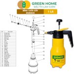 Cấu tạo chi tiết bình xịt Dudaco 1L với các bộ phận dễ tháo lắp và bảo trì tiện lợi.
